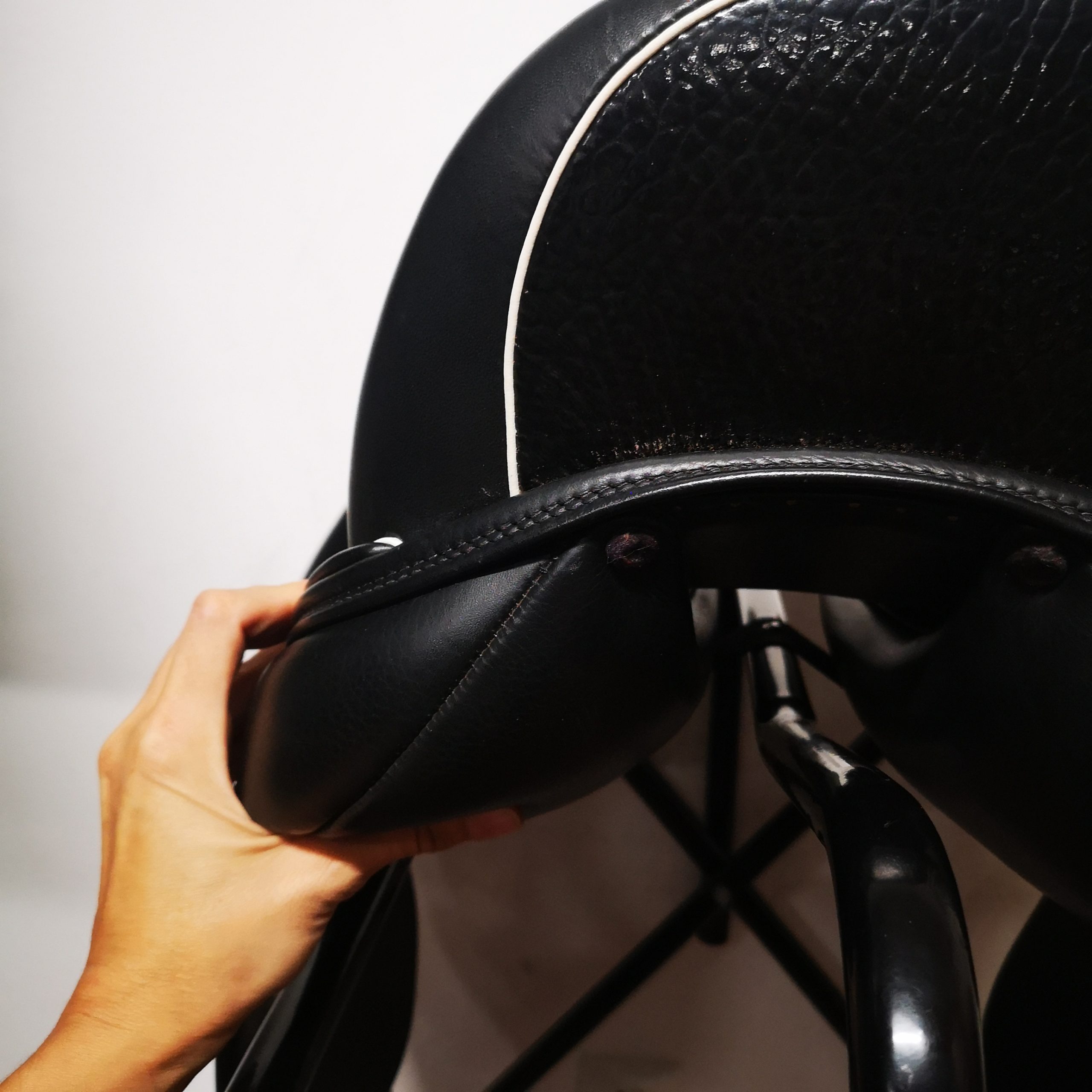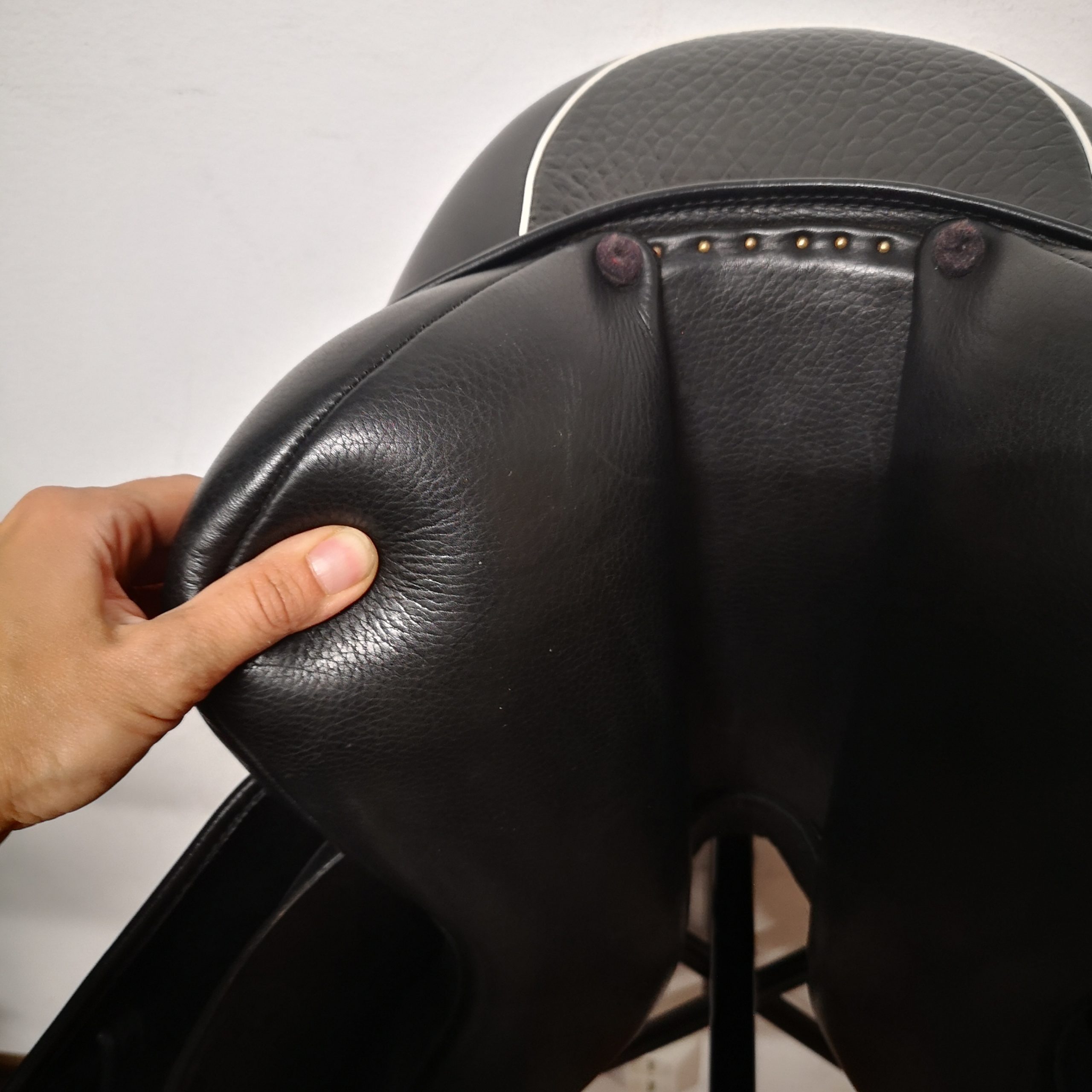 Pele de bezerro macia, assento muito suave e confortável. Fácil de ajustar a largura (chave Allen incluída).