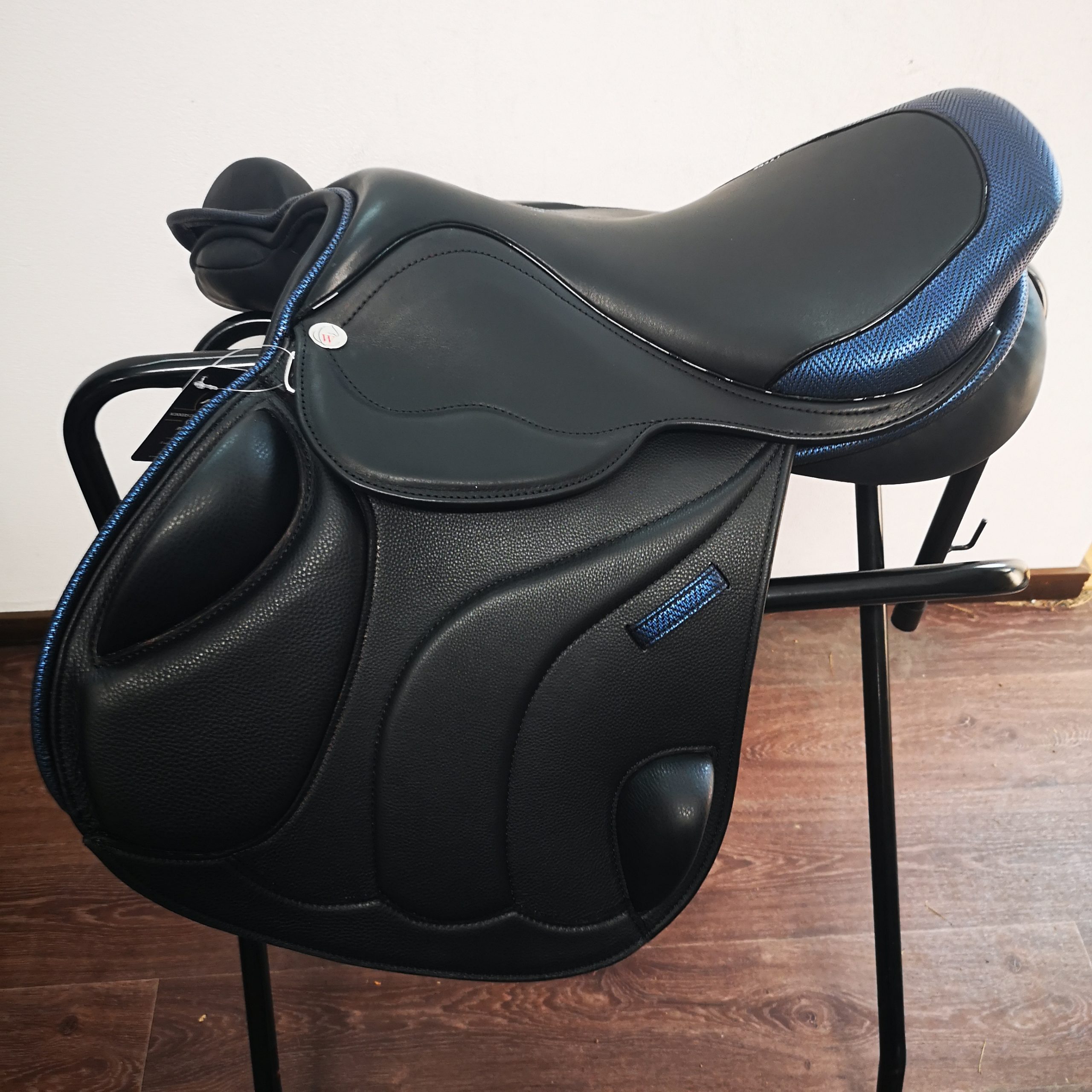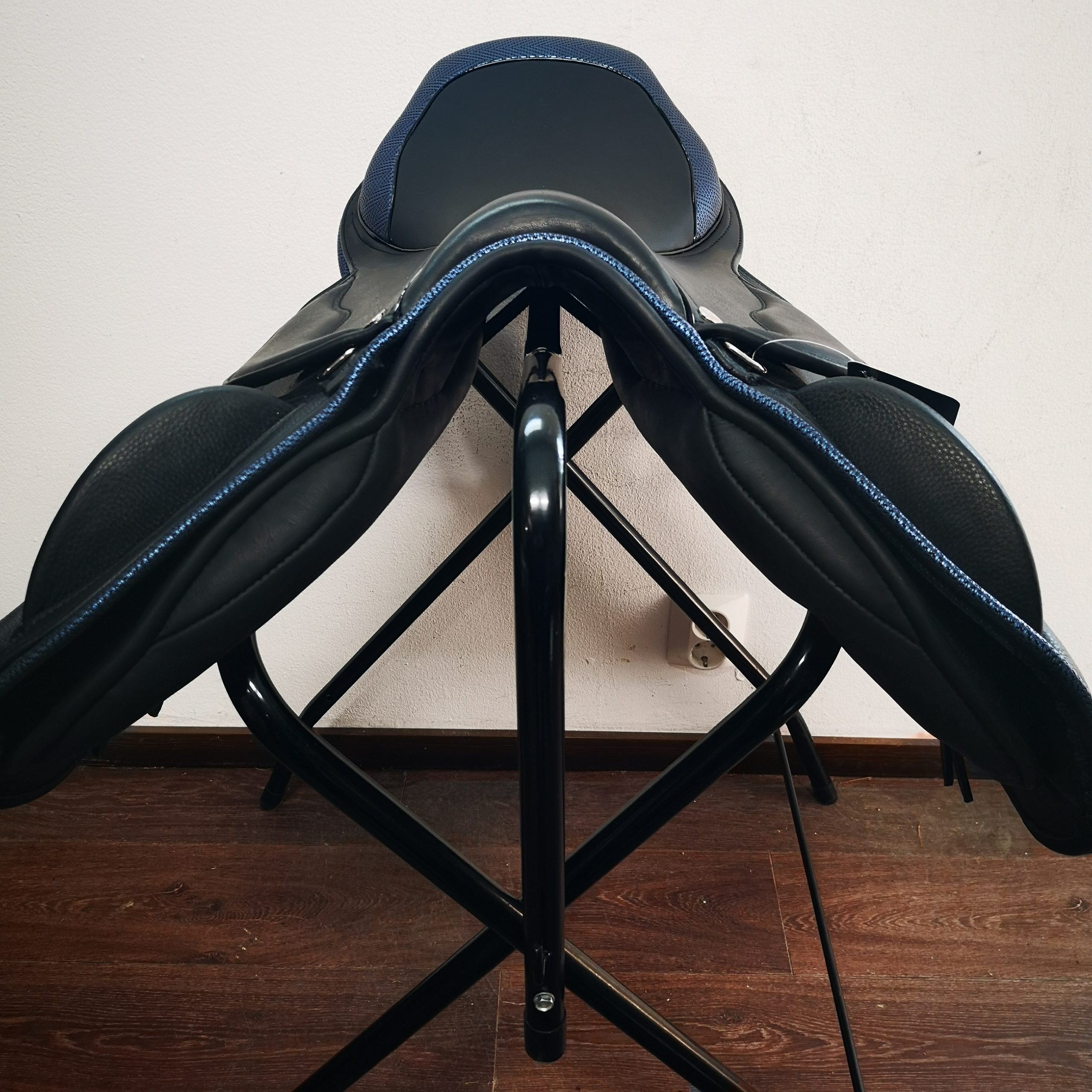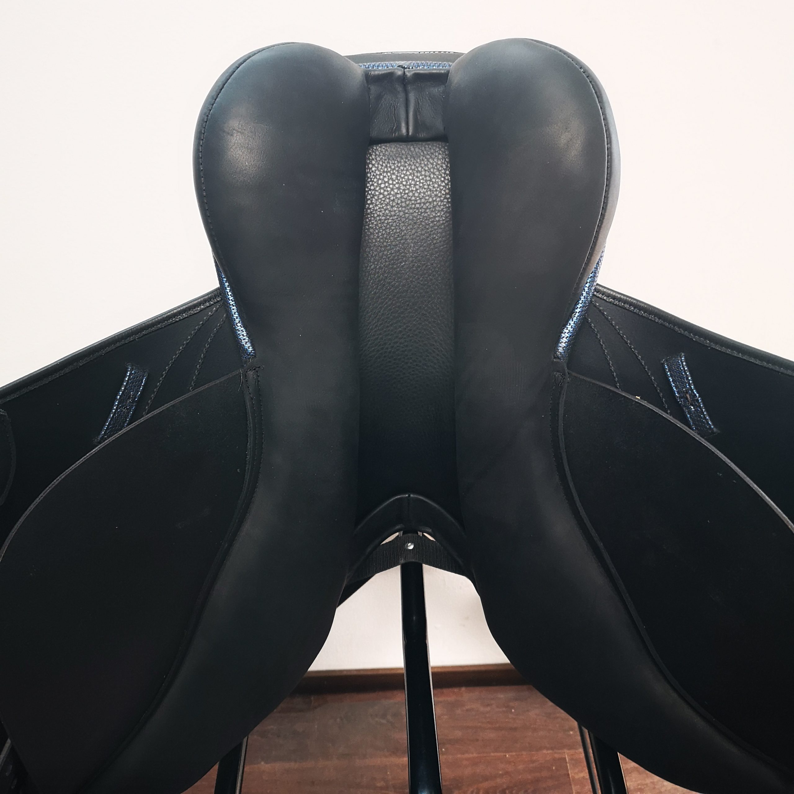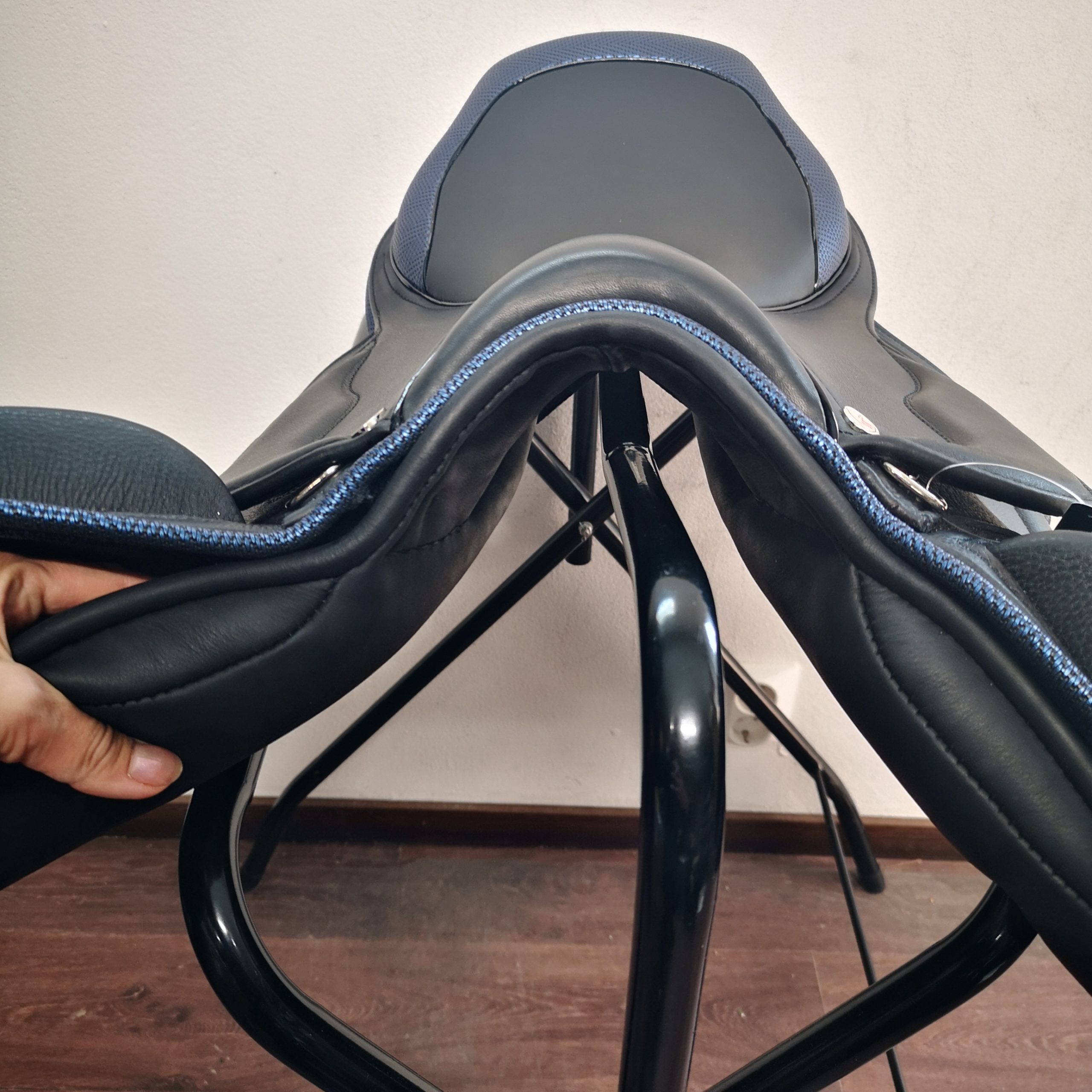 Almofada de sela inglesa de alta qualidade em pele macia. Adapta-se a costas direitas e curtas! Tamanho do assento 17,5″, mas mais perto de 17″. Muito bom espaço para a coluna, especialmente nos lados desgastados pelo tempo. As asas são flexíveis para deixar espaço para as paletes. A largura é ajustável no dispositivo. Queres encomendar esta peça com pormenores de cores diferentes, talvez diamantes? Queres encomendá-lo com pormenores de cores diferentes, talvez diamantes? Tudo é possível, o prazo de entrega é de cerca de 4 semanas!