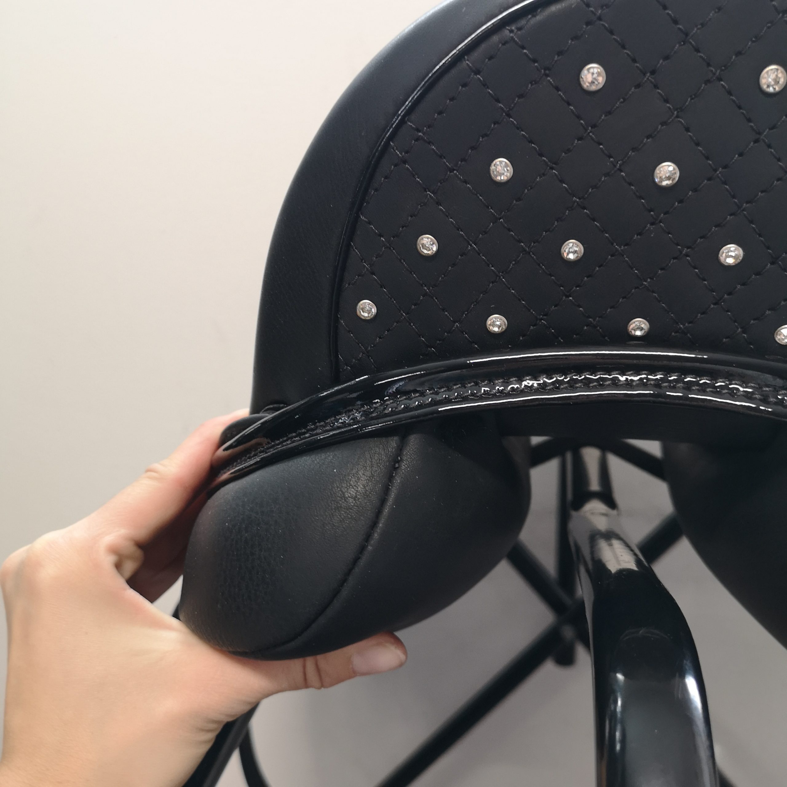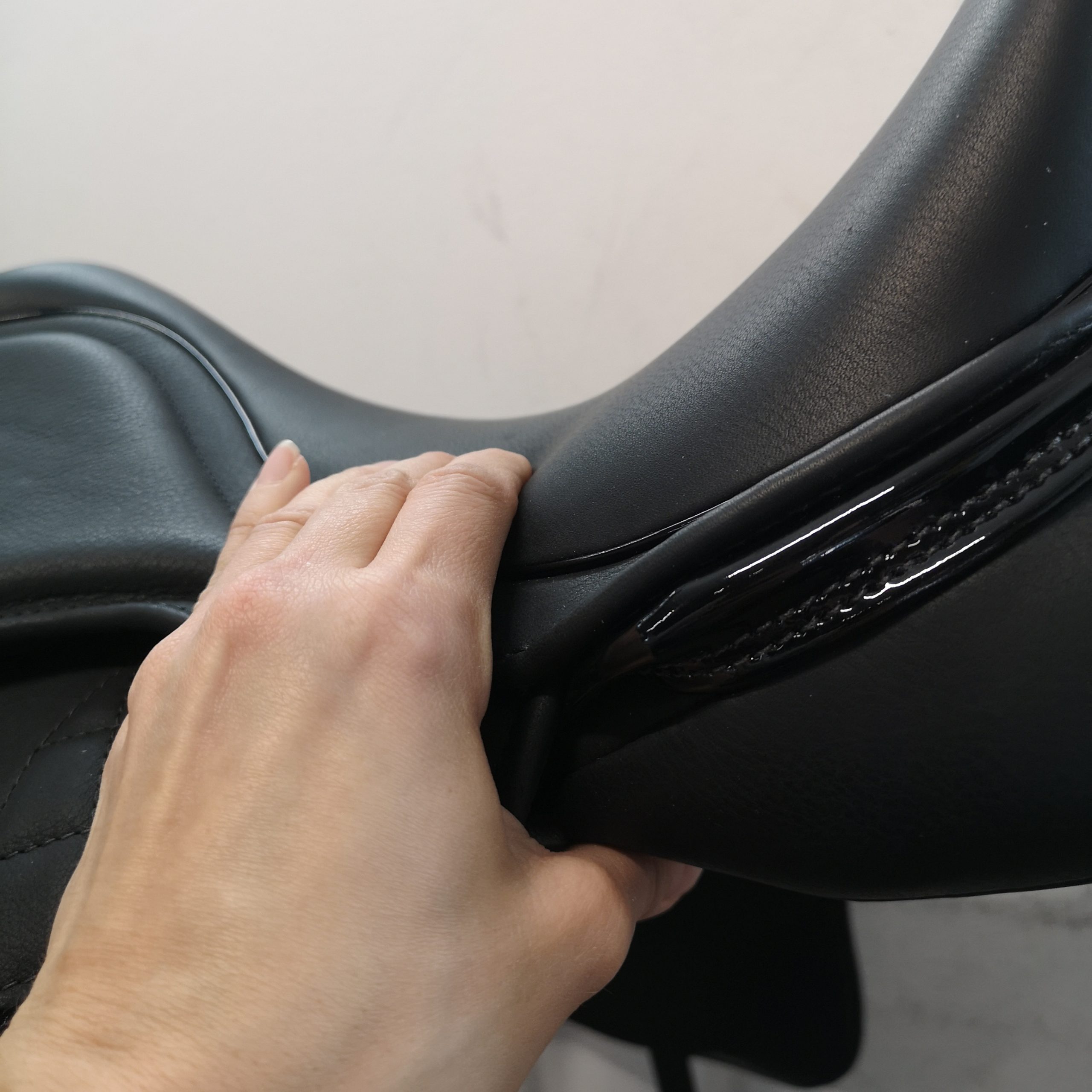 – Tamanho e forma dos apoios para os joelhos – Comprimento da asa – Painéis curtos / longos à frente – Forma e comprimento dos painéis – Posição das contra-alças – Largura do espaço para a coluna – Tamanhos de assento 16,5″, 17″, 17,5″ e 18″ – Couro, costuras, acabamentos, encosto, cristais