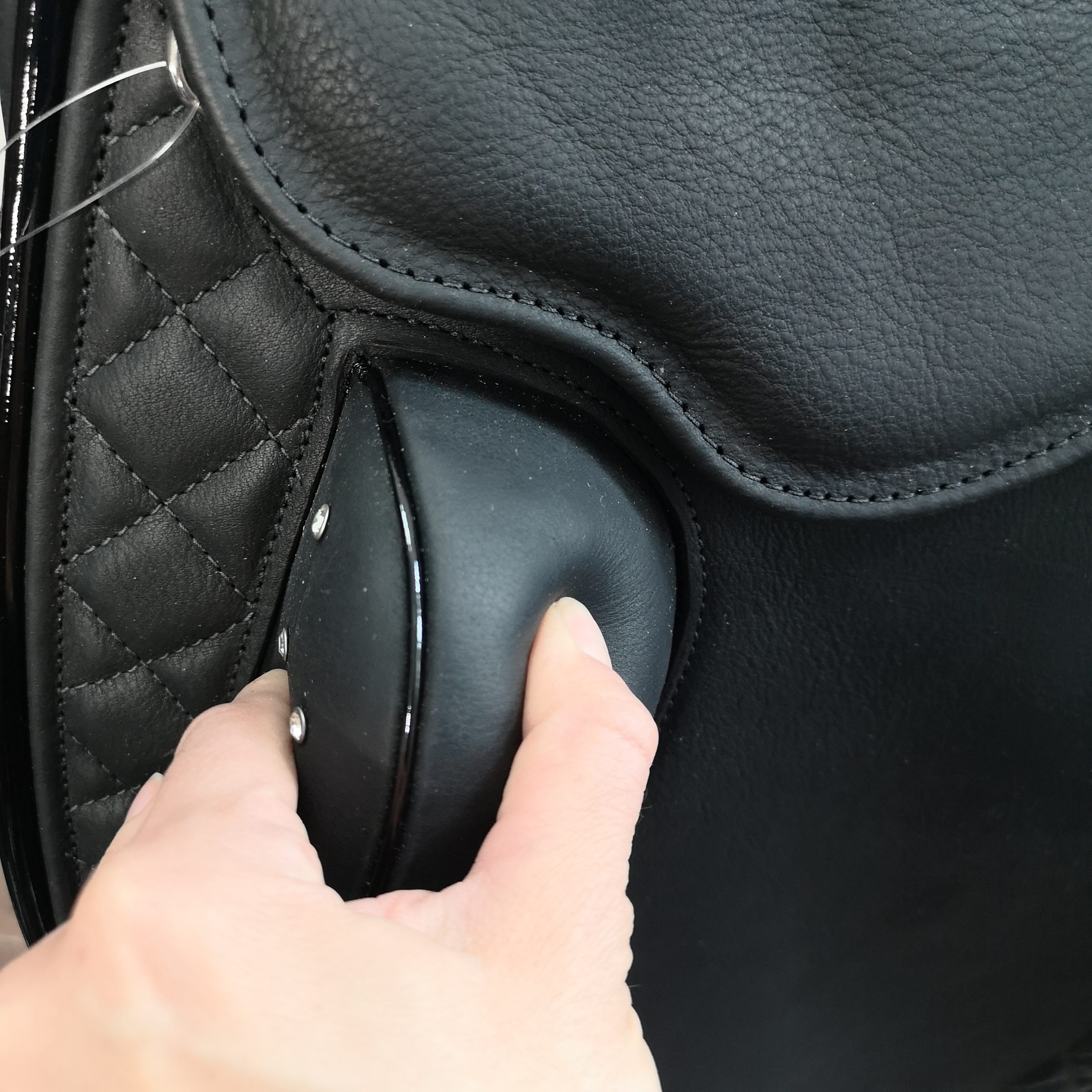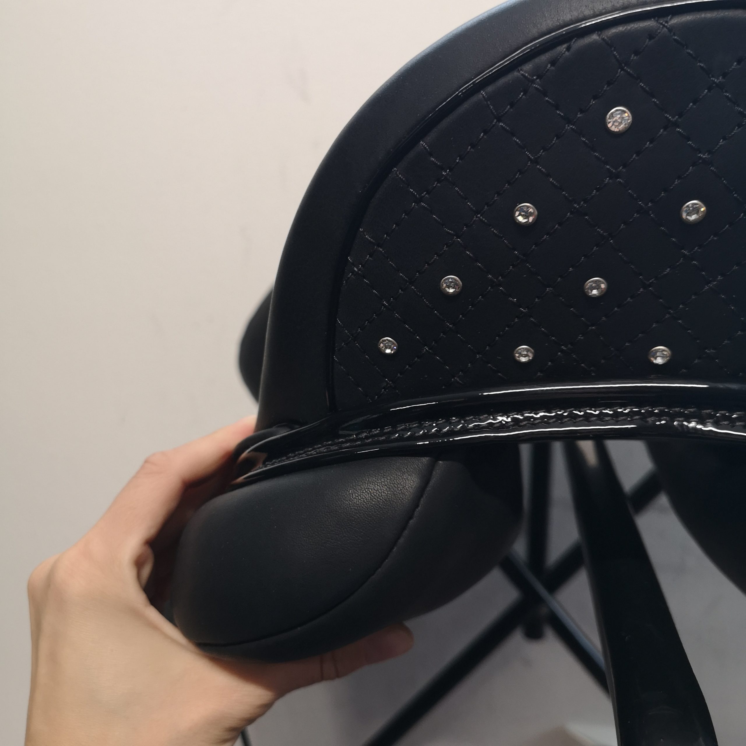– Tamanho e forma dos apoios para os joelhos – Comprimento da asa – Painéis curtos / longos à frente – Forma e comprimento dos painéis – Posição das contra-alças – Largura do espaço para a coluna – Tamanhos de assento 16,5″, 17″, 17,5″ e 18″ – Couro, costuras, acabamentos, encosto, cristais